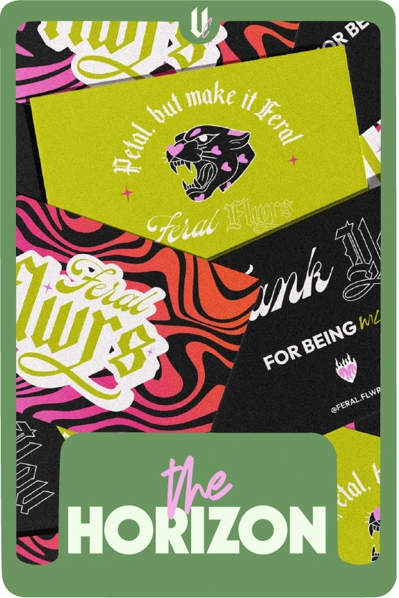 Cette offre va plus loin : elle déploie ton univers de marque avec un élément de communication supplémentaire (Carte de visite, Étiquette suspendue (hang tag), Étiquette produit, Stickers / autocollants, Flyers) pour que ton identité se propage sur d'autres supports. Elle inclut également 5 posts Instagram désignés & prêts à publier, ainsi que tes images de profil et couvertures de stories, pour captiver ton audience dès le lancement.